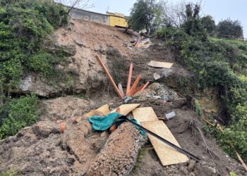 Crolla un altro pezzo di costone panoramico. Come vent’anni fa: cedimento da via Roma sull’Istonia
